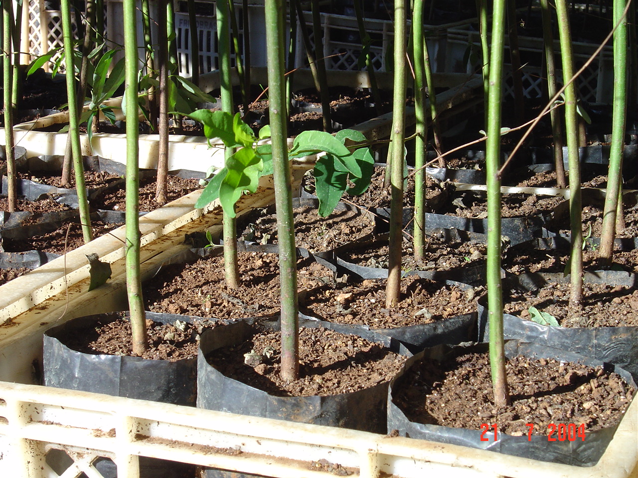 O objetivo da enxertia foi o salvamento vegetativo do genótipo e do fenótipo de todas as matrizes, antes do abate, para as avaliações tecnológicas da madeira.