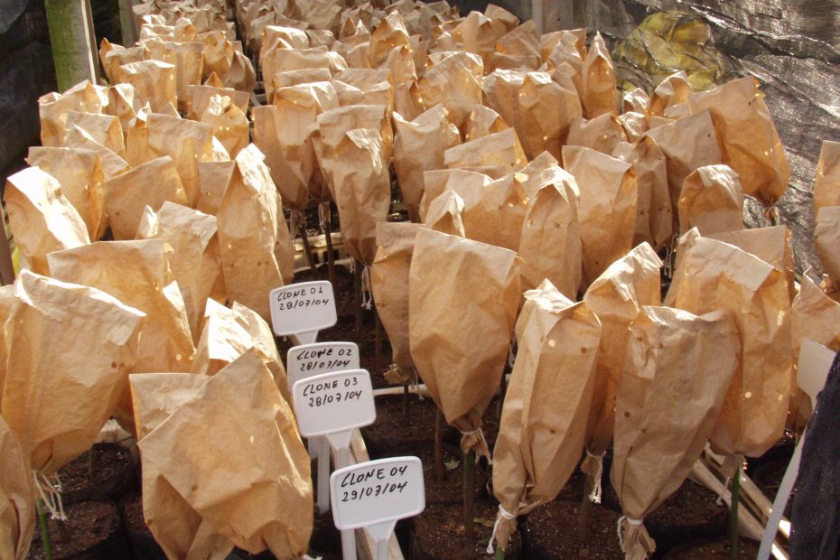 O índice de pegamento dos enxertos das matrizes do projeto, consideradas fisiologicamente velhas, foi bastante baixo, exigindo que se escalasse várias vezes grande parte das árvores, com equipe especializada.