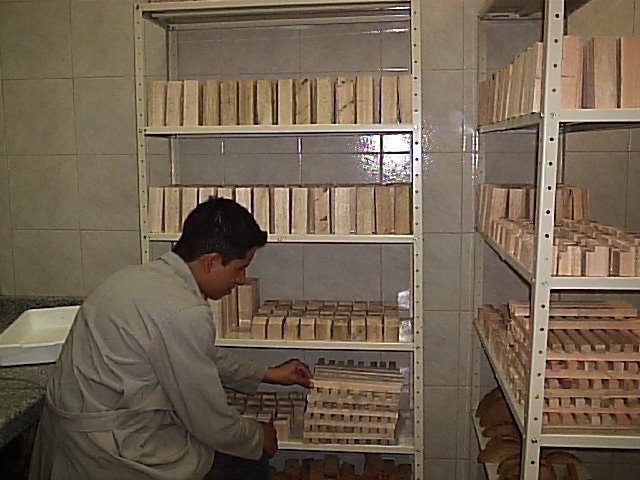 Foram encaminhados para Laboratório de Tecnologia da Madeira seção dos discos e pranchões para a preparação dos corpos de prova e as devidas avaliações tecnológicas.